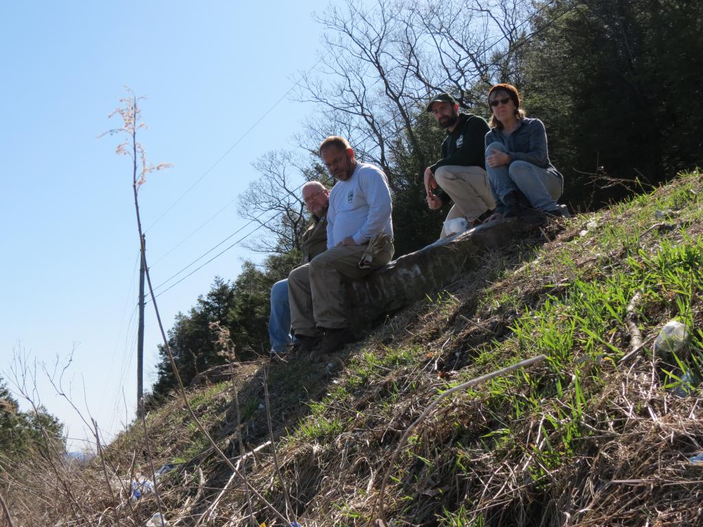 Photos: Atop Riansares vista, Bald Eagle State Forest District Forester Matt Beaver discusses cleanup strategies with PA Department of Conservation and Natural Resources’ equipment operator Dick Bailey, Recreational Forester Dale Ronk and CleanScapes Board member Mala Moore. Just below them the hillside is strewn with tossed trash. To clean up the litter they need caring community members to join the May 7 vista cleanup event. To learn more visit www.cleanscapes-ncpa.com, contact CleanScapes at 570.726.3511 or clintoncountycleanscapes@yahoo.com.