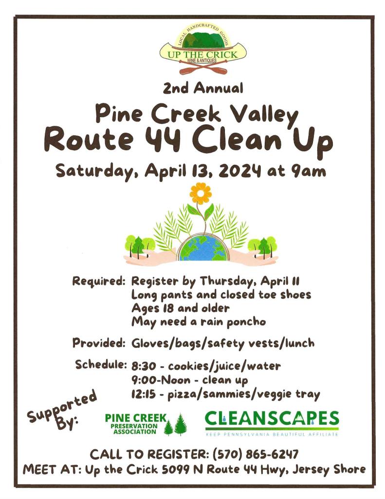 Join us for the 2nd Annual Pine Creek Valley Route 44 Clean Up on Saturday, April 13, 2024!