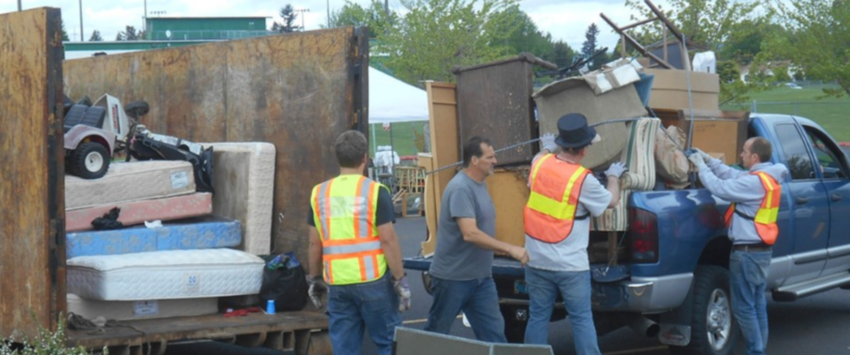 Items accepted include worn indoor and outdoor furniture, mattresses, non-recyclable plastics, vacuum cleaners, worn tools, and metal items. Items not accepted include food and construction debris, appliances (including air conditioners, microwaves and dehumidifiers), TV’s, paint, oil or other chemicals, pallets, tires and all electronics.
